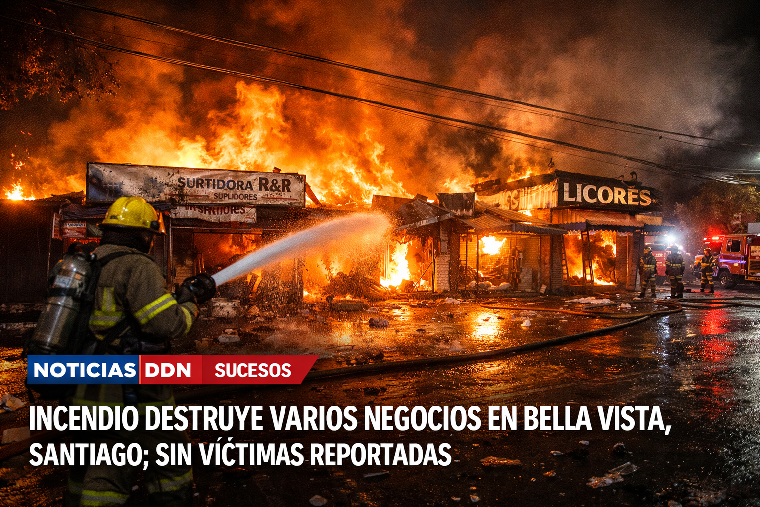 De acuerdo con informaciones preliminares, el siniestro se originó por causas aún no determinadas y provocó cuantiosas pérdidas materiales, afectando varios negocios de la zona. Miembros del Cuerpo de Bomberos de Santiago acudieron rápidamente al lugar y lograron controlar las llamas tras varias horas de labores.
